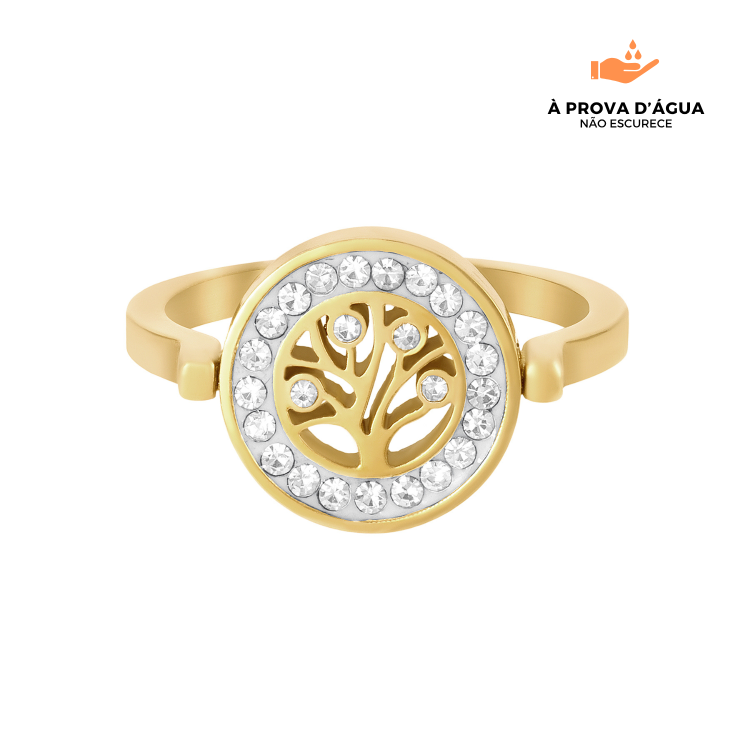 O anel da coleção Árvore da Vida representa raízes firmes, crescimento constante e tudo aquilo que nos mantém de pé. Com brilho delicado e detalhes dourados que encantam, ele carrega mais que beleza, carrega significado. Perfeito para presentear ou se lembrar da sua própria história.