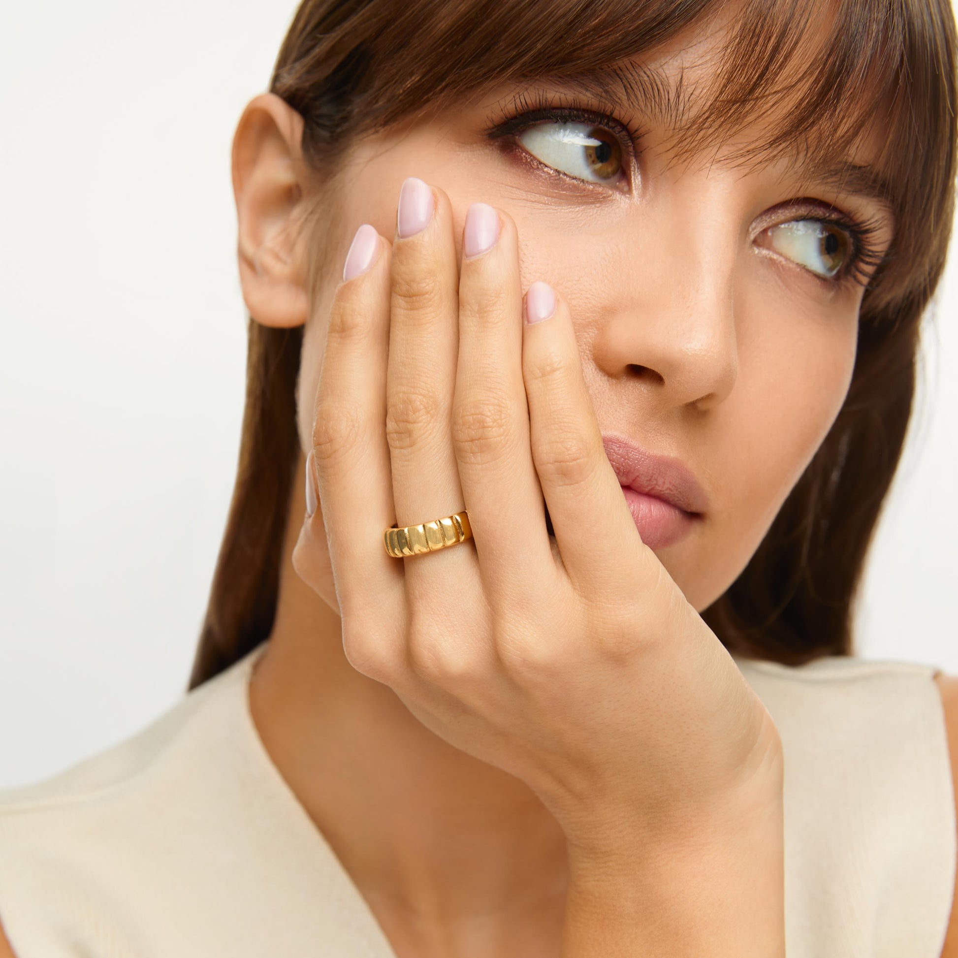 Com um design marcante e textura sofisticada, este anel transmite elegância em cada detalhe. O modelo Curvina, banhado em Ouro 18K, apresenta um acabamento ondulado que reflete a luz de forma sutil, criando um efeito moderno e atemporal.