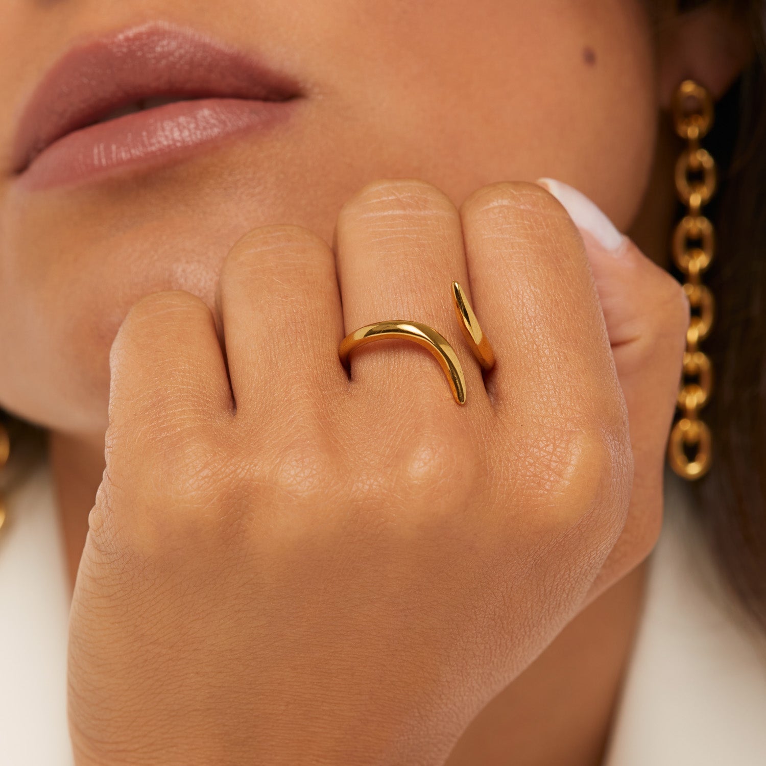 Com curvas marcantes e um design nada óbvio, o Anel Lume chama atenção pela forma e pelo impacto. Ele transmite presença, força e sofisticação com um visual leve, mas impossível de passar despercebido.