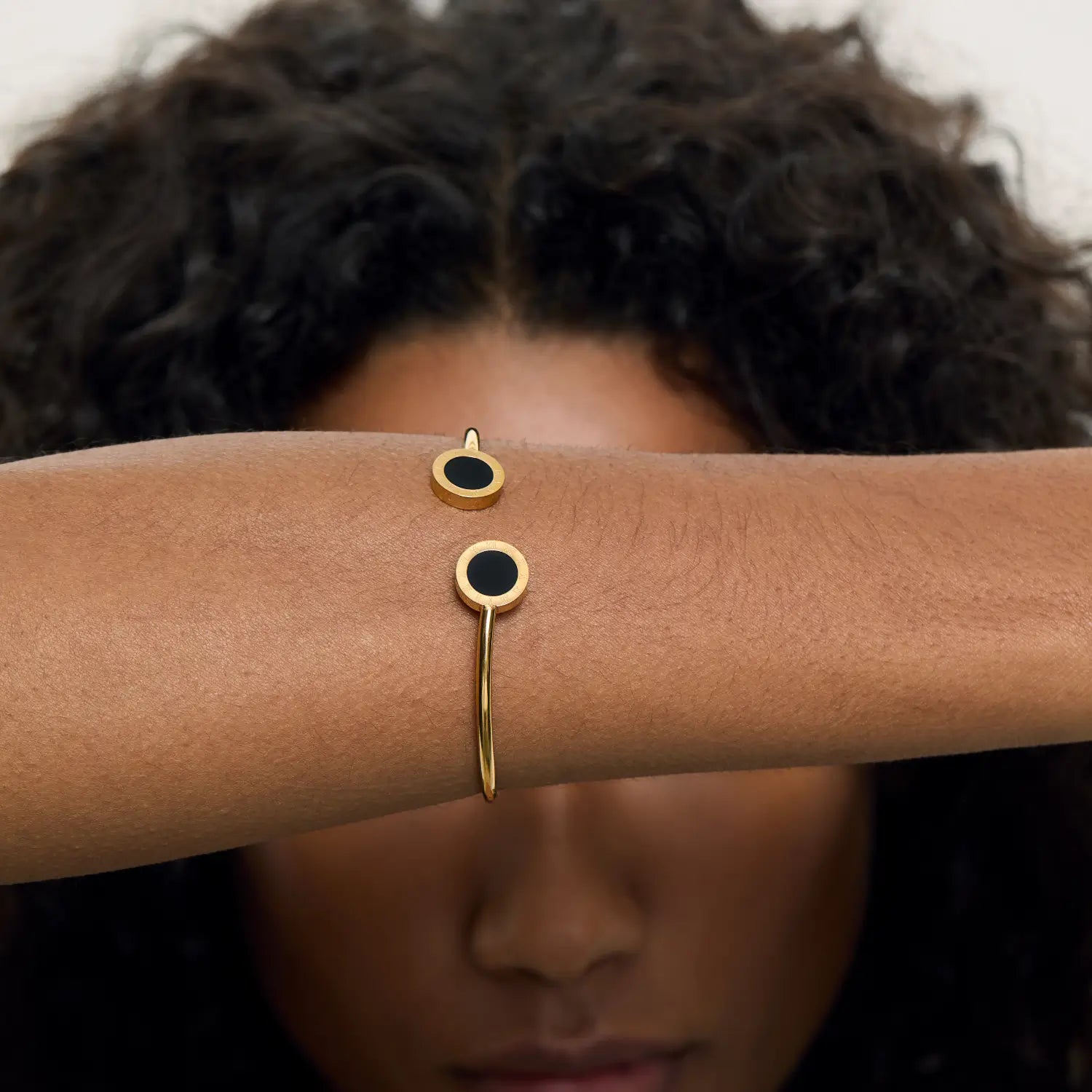 Bracelete Ônix Meia Lua Banhado em Ouro 18k