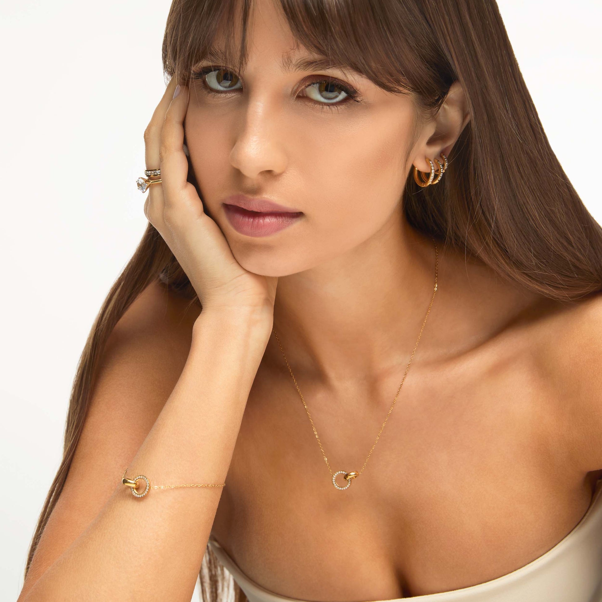 A delicadeza dos detalhes torna o Colar Anéis Cruzados um símbolo de elegância e conexão. Seu design sofisticado, com dois anéis entrelaçados, representa união e harmonia, enquanto os cristais adicionam um brilho sutil à peça. Perfeita para quem busca um acessório refinado e atemporal.