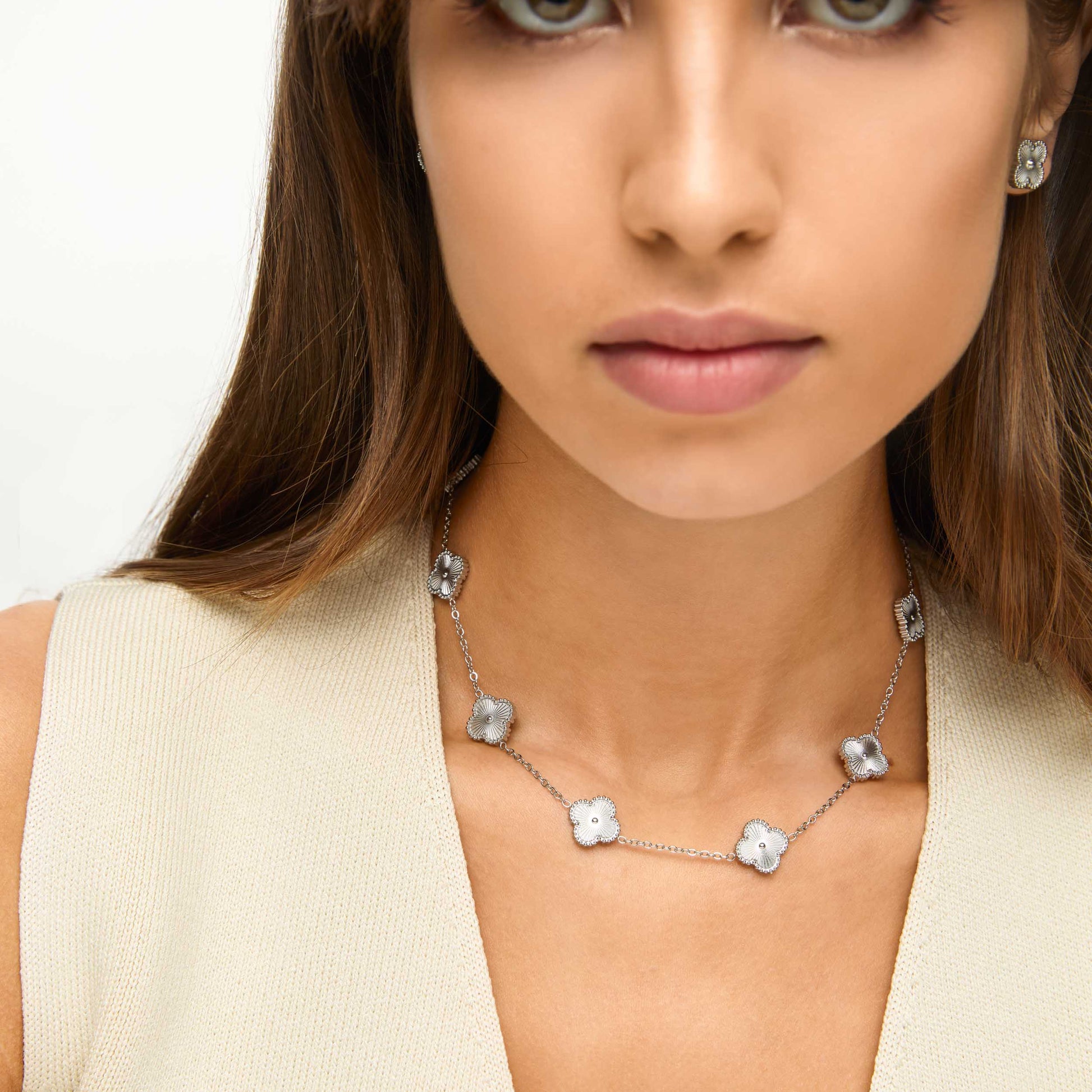 Colar de Trevo Prata combina sofisticação e significado. Seu design exclusivo representa não apenas a boa sorte, mas também a energia que te impulsiona a seguir em frente. Seja em momentos especiais ou no dia a dia, ele é uma peça única que te acompanha, lembrando sempre da importância de ter fé e confiança em cada passo da sua jornada.